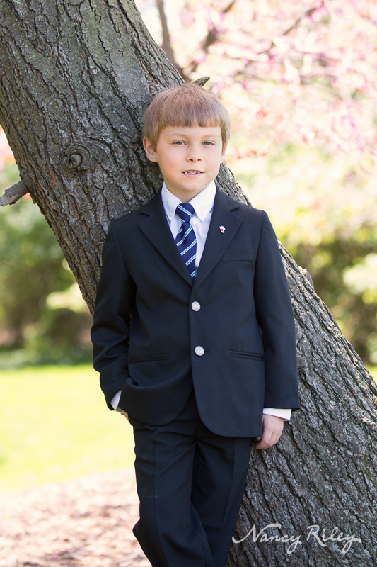 So touching – I love that you took his baptism pictures as well. What a wonderful rememberance. Love his expressions and being in a tree with his suit. 🙂