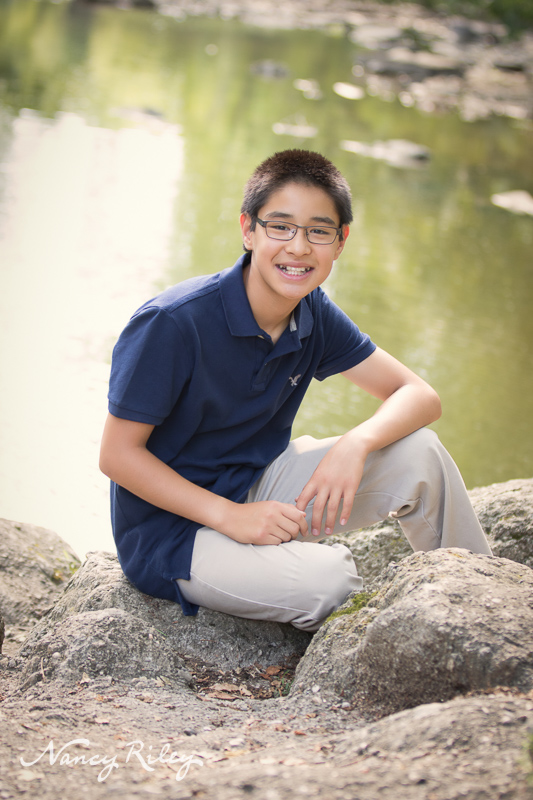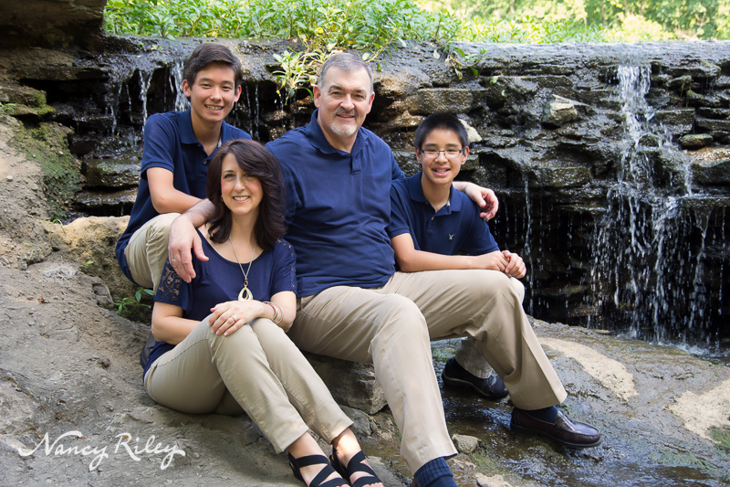 Still, this family braved the heat and met me at the local park for their pictures, and you wouldn’t guess from how they looked how uncomfortable they had to be. Even the tween and teens were cheerful and uncomplaining through the whole family session. In fact, they were quite helpful, holding diffusers, looking for spots with good lighting, and helping their grandparents get up and down the rocky terrain. In fact, there was only one time that I recall that any of them gave me any resistance, and that was, well, I’ll get to that in a minute.