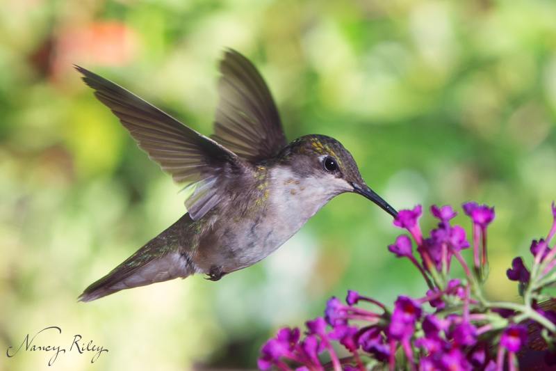 What I find ironic is that creating “natural” appearing hummingbird images takes even more planning and adjustment with lighting, foreground and background arranging, and likely in the future, digital editing, than last year’s studio-type shots. However, it is a good exercise in technical problem-solving, and hopefully, next year, when some of these juveniles return with ruby throat feathers, I’ll be ready for them.