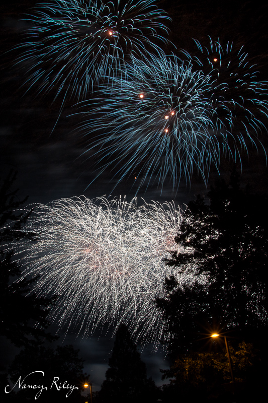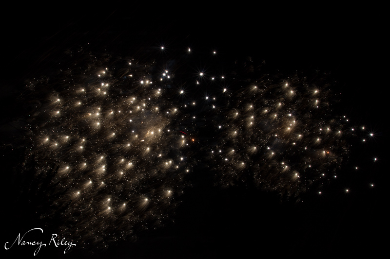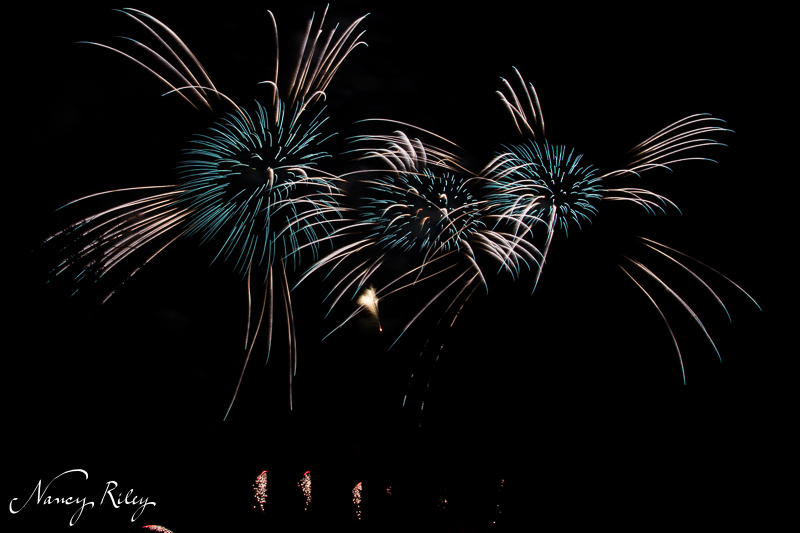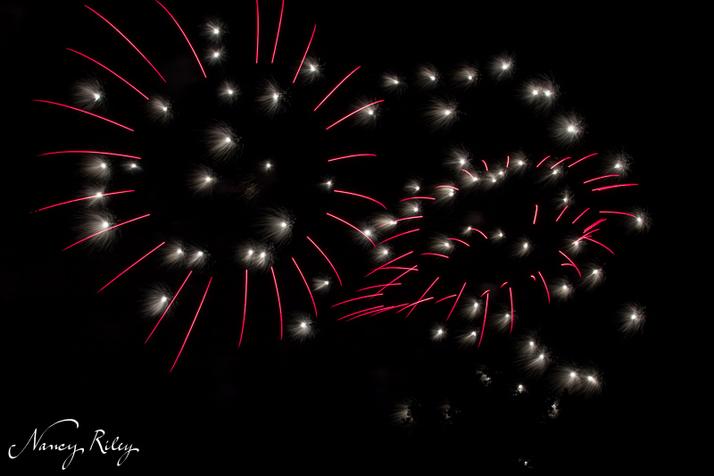 Although I know that preparation and familiarity with a fireworks show would be very helpful in getting great shots, we’re still not at a stage in our lives that I can devote half a day to staking out a location, and I don’t think I’ve ever shot the same fireworks show twice. It’s not that I lead such a wandering life, but more that I don’t get out much.