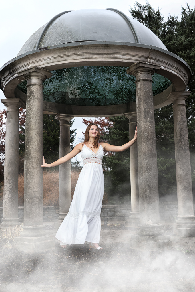 She had been looking forward to sharing the experience with her sister Mikaila, home from college, so they decided to brave the wet weather. On the day of her session, it rained continuously and gradually eased up in the first half hour of her session. We did her first pictures under the gazebo to keep her as dry as possible, and gradually had her peep out from under the roof. She did get the occasional water dripping from the edge of the dome.