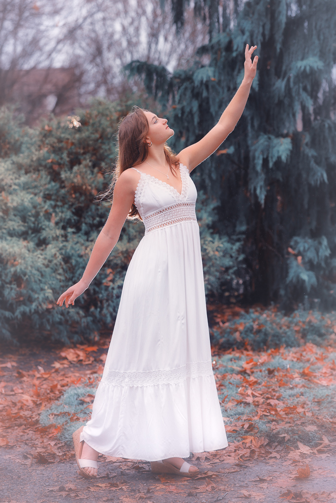 I knew Aubry was adorable, with a sweet and playful personality. But when she performs for marching band, she takes on many characters. She can be boisterous and comical, or elegant and ethereal. She is also pursuing a career as an artist and visual storyteller, so I knew we wanted to create a variety of image styles for her.