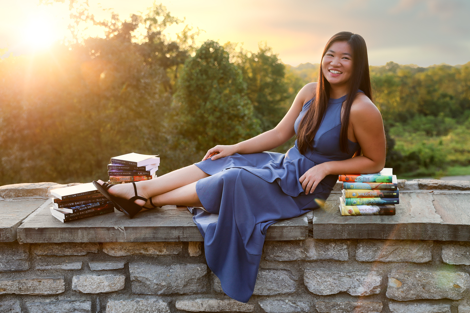 In a typical senior portrait session, I have the luxury of clicking the shutter whenever I see an gesture that intrigues me, but because of the wind, Jessica had to maintain her pose constantly, and we got a few shots in whenever the wind calmed enough to brush her hair out of her face. Looking at Jessica’s hair reminds me of a scene from The Gilmore Girls where someone assures Rory that she is going to make it to Harvard because she has that “really good, straight, shiny Harvard hair.”