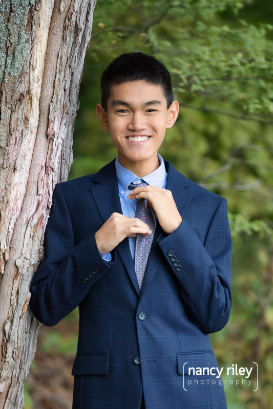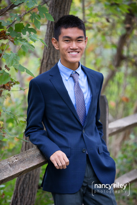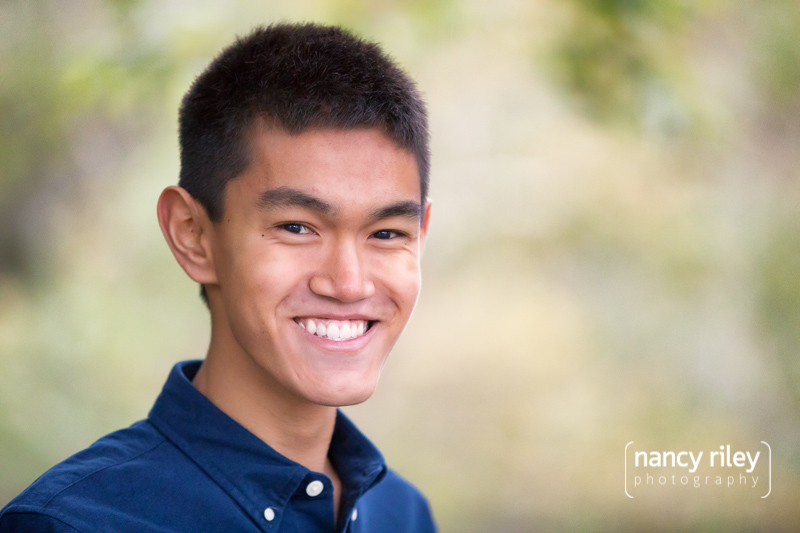 Michael isn’t one to necessarily want to draw attention to himself, which made him extraordinarily uncomfortable at having a big camera lens pointing at him all the time. However, he was extremely polite and obliging, and allowed me to pose him limb by limb as I saw fit. Kind of like a very well-behaved graduating student action figure. And I soon found out that the cool, aloof expression that seems to be the trend for senior boys these days wasn’t going to work for him. He simply didn’t have the requisite blasé attitude to pull it off, which was fine by me, because what he did have was an open, endearing smile that showed his sweet and genuine nature.