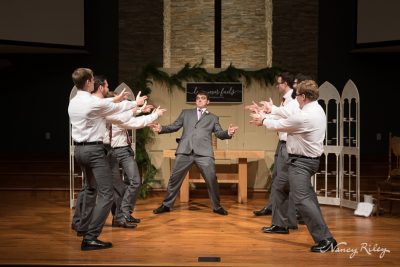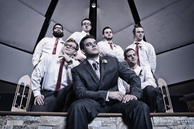 There was a short time when the formals were scheduled to start that I couldn’t find the bride and her bridesmaids. Someone finally tipped me off that they were all in the bathroom. It turned out that they were all taking goofy group selfies in the bathroom mirror. But the groomsmen were happy to do their goofy group pictures in front of me. I could also probably do an entire blog post on the groomsmen’s antics alone. Those dudes were hilarious. But I’ll limit myself to just one more.