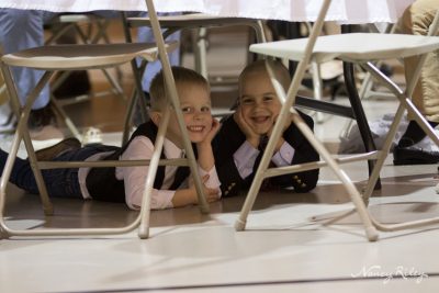 If you look closely at the picture of the bride and groom dancing, you can see a couple of little guys finding a secret place to watch.